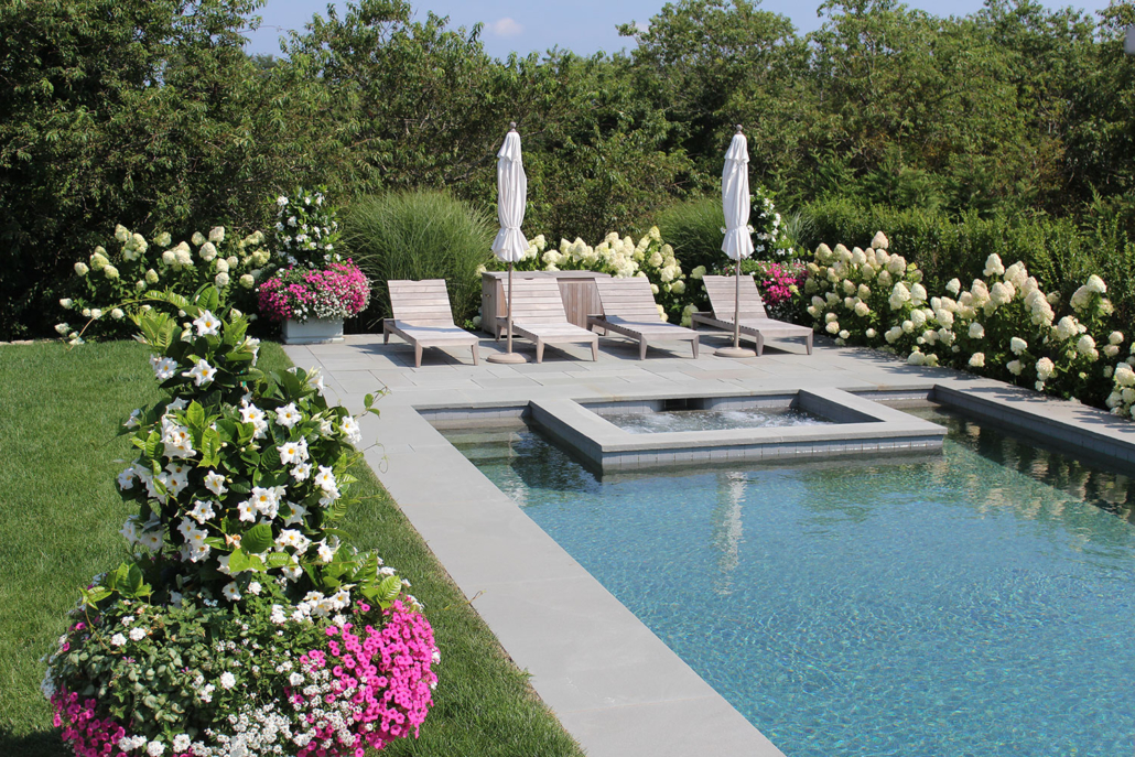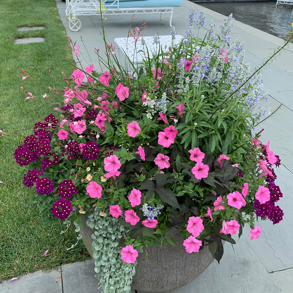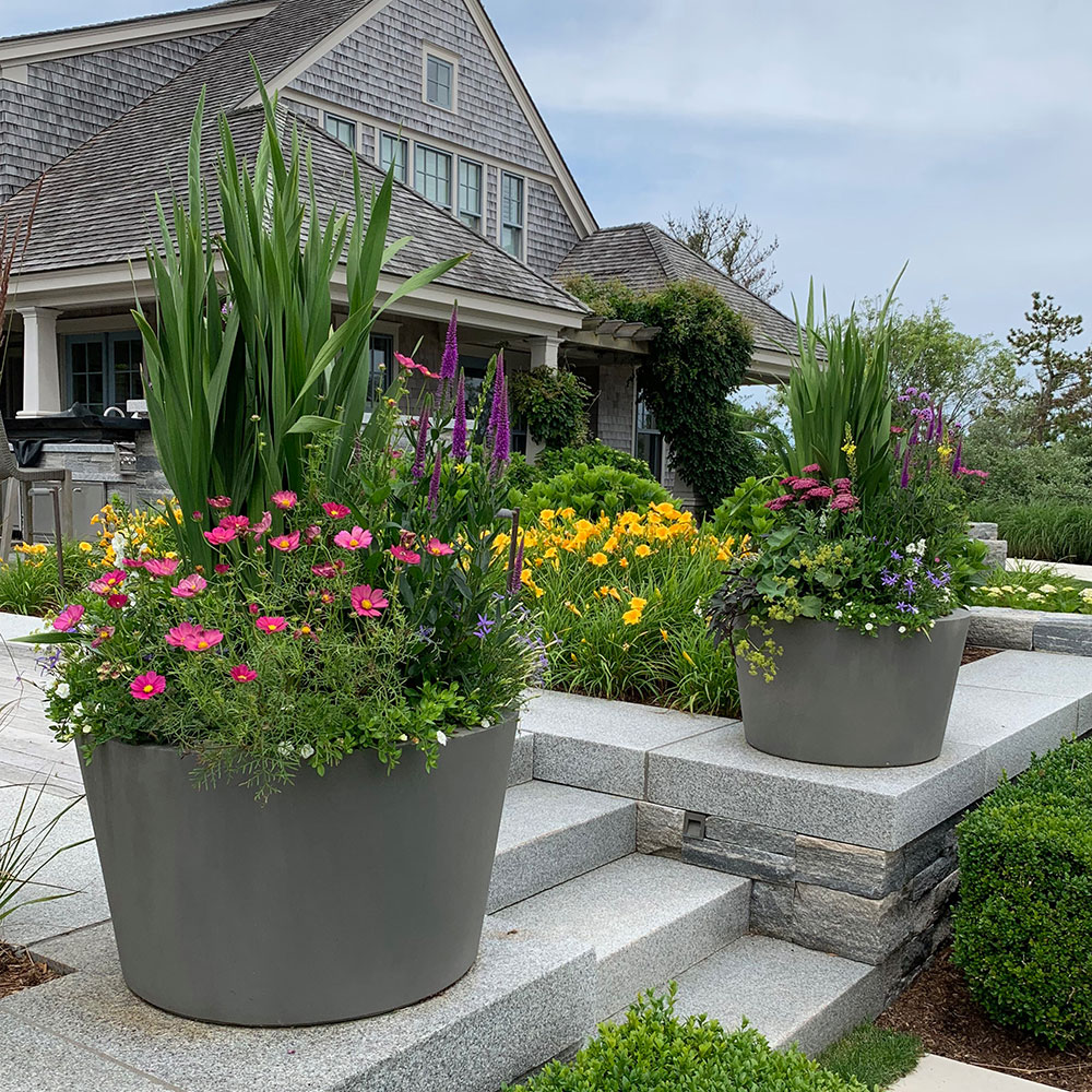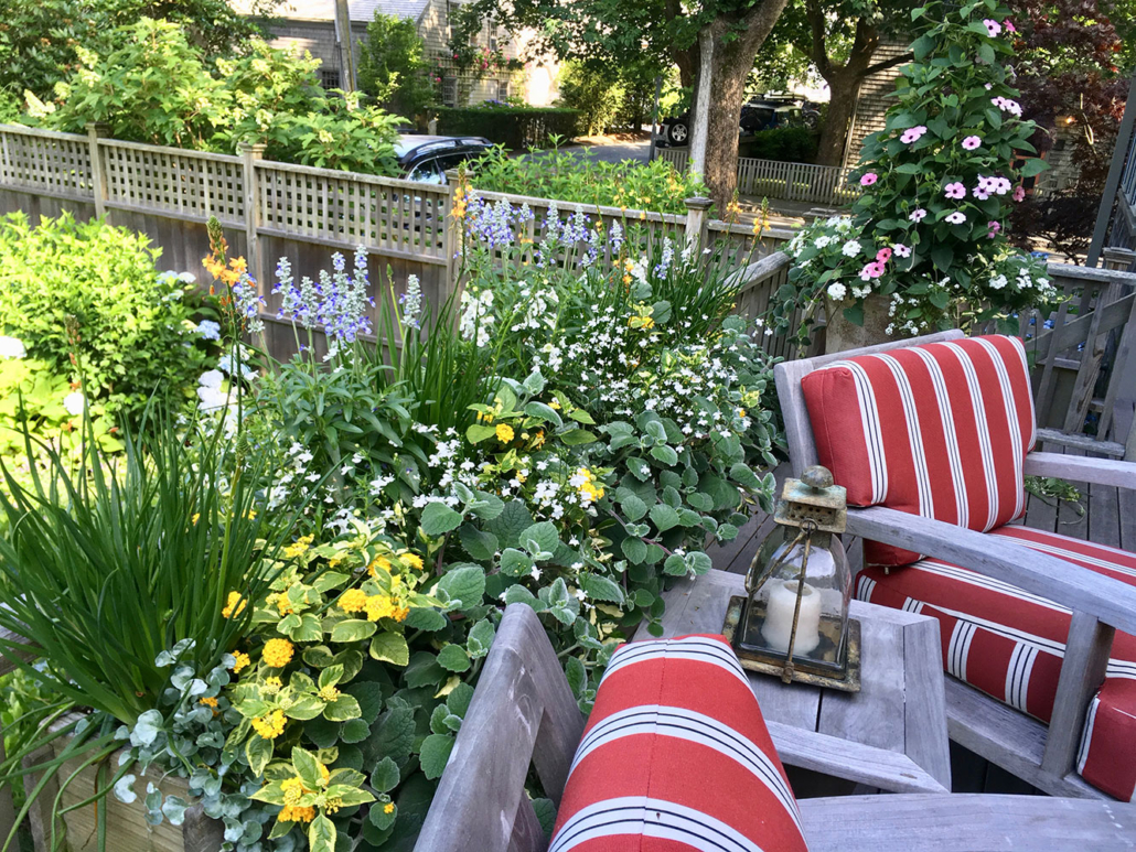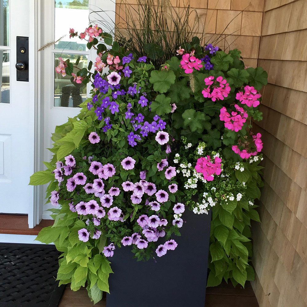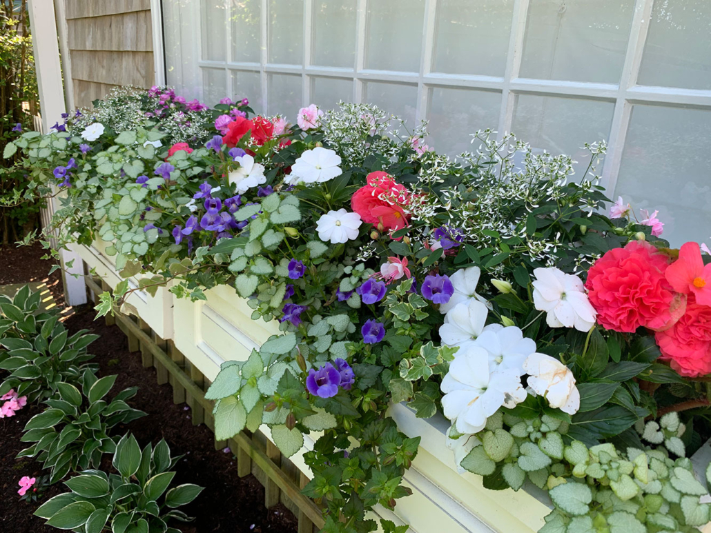 Stronger colors are excellent for drawing the eye. These colors stand out during the heat of the summer, making them an excellent choice for those looking to make a statement. Drive through the town of ‘Sconset to see an abundant display of colors in both gardens and planters. These colors will help you get that coveted “cottage style” look.