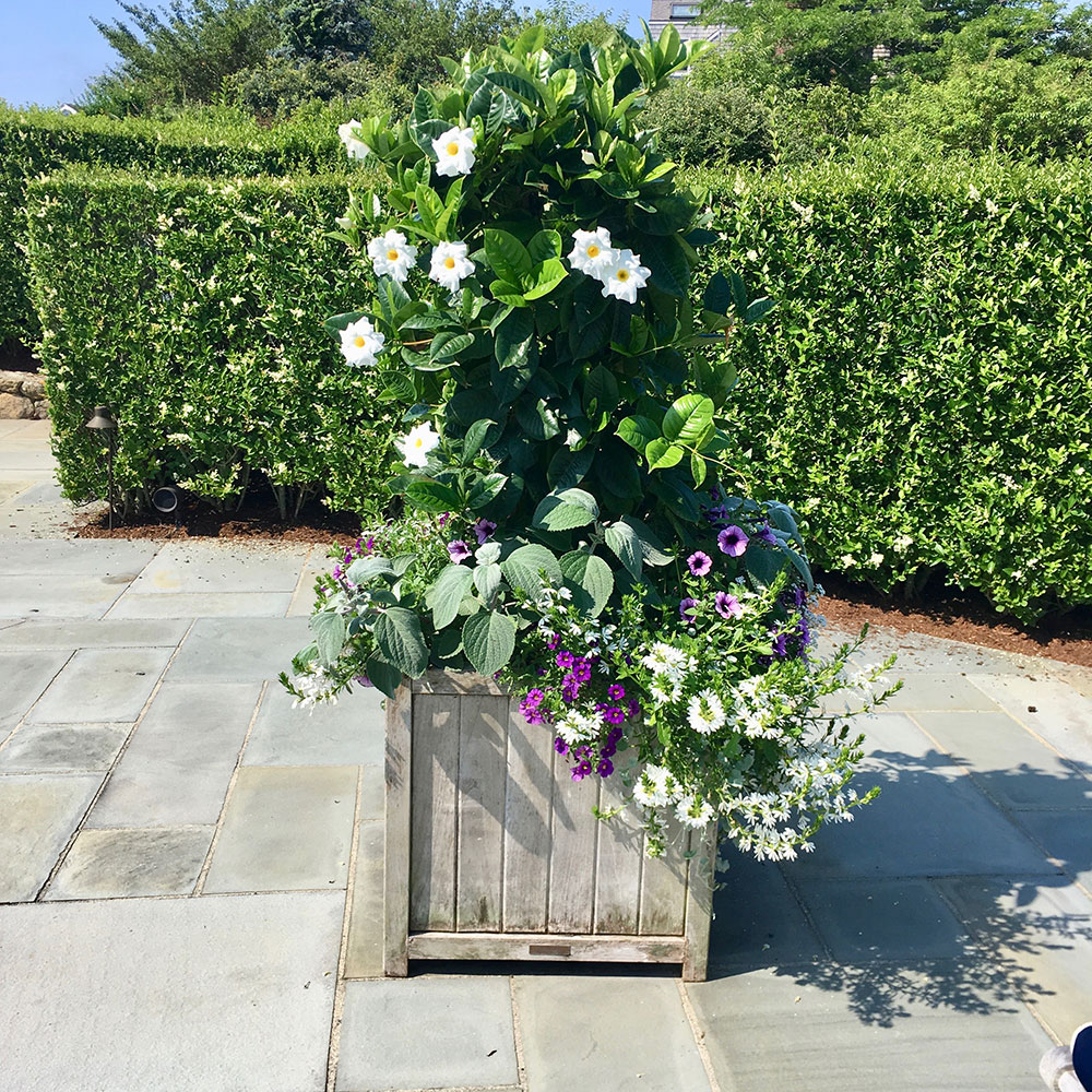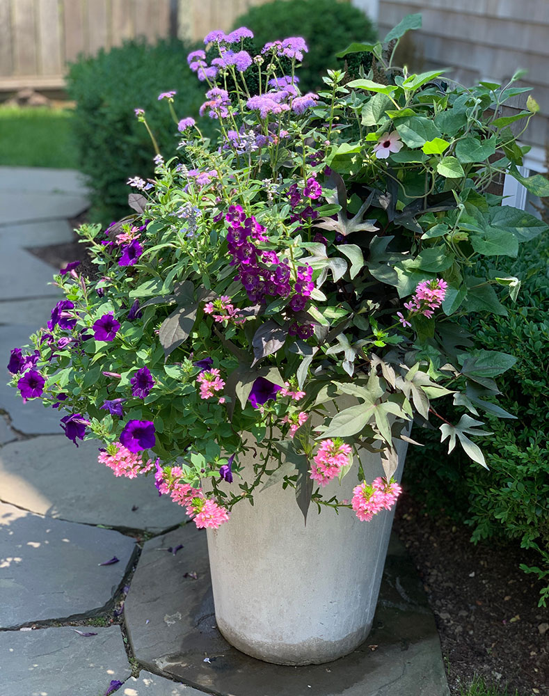 Single color schemes, utilize different shades of the same color, repeated in an array of different flowers. Although all flowers will all fall under the same category of color, the tones and shape of the flowers will be diverse, making this a dynamic planting style. Any Monochromatic color scheme may be pared with accents of silver or even deep-toned foliage for a dramatic effect. Often hints of white will be added to give contrast and add some lightness. Use this planting style if you want to add some color but still want to have a feeling of calm. I recommend this style for properties with a lot of planters or on properties where the view is the main focus.
