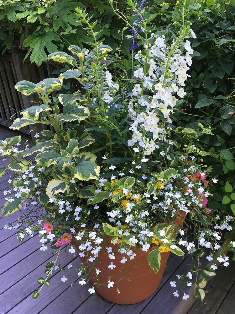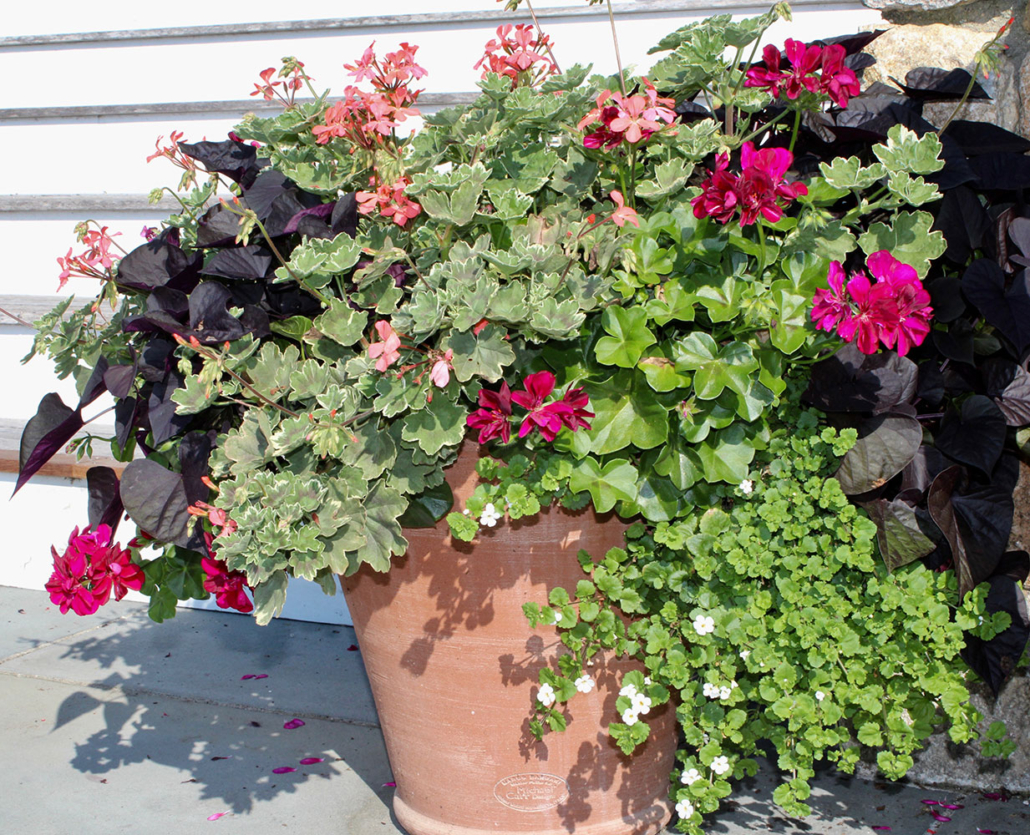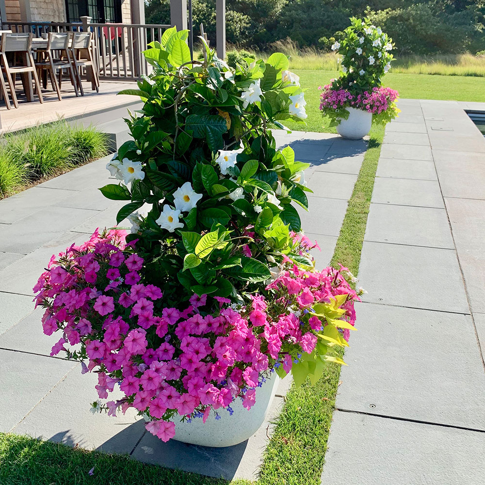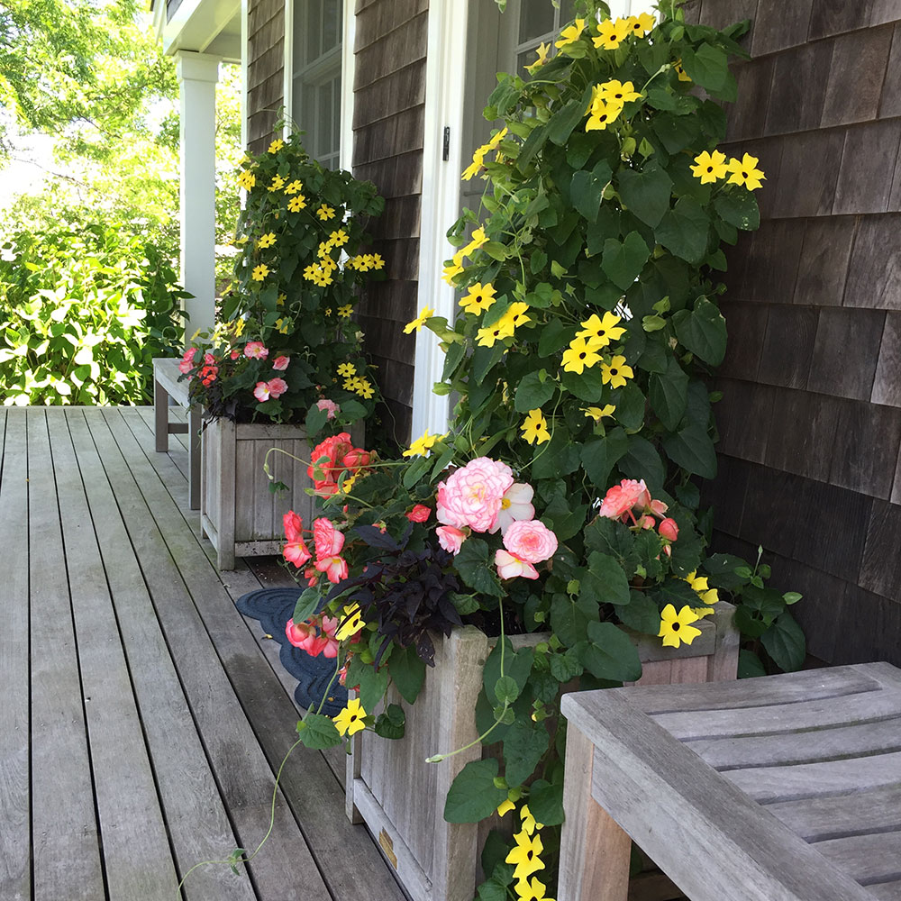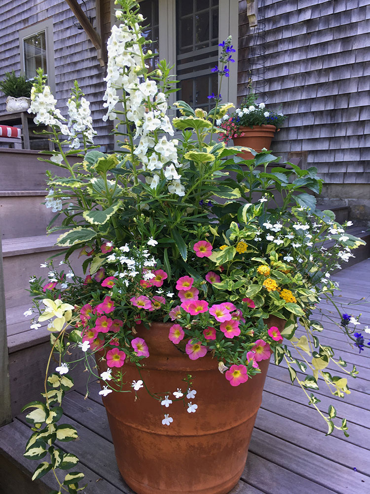 Stronger colors are excellent for drawing the eye. These colors stand out during the heat of the summer, making them an excellent choice for those looking to make a statement. Drive through the town of ‘Sconset to see an abundant display of colors in both gardens and planters. These colors will help you get that coveted “cottage style” look.
