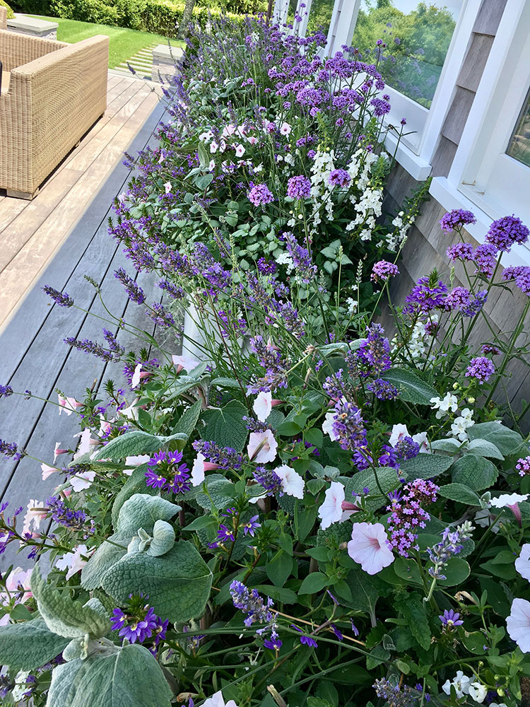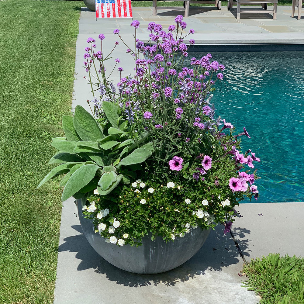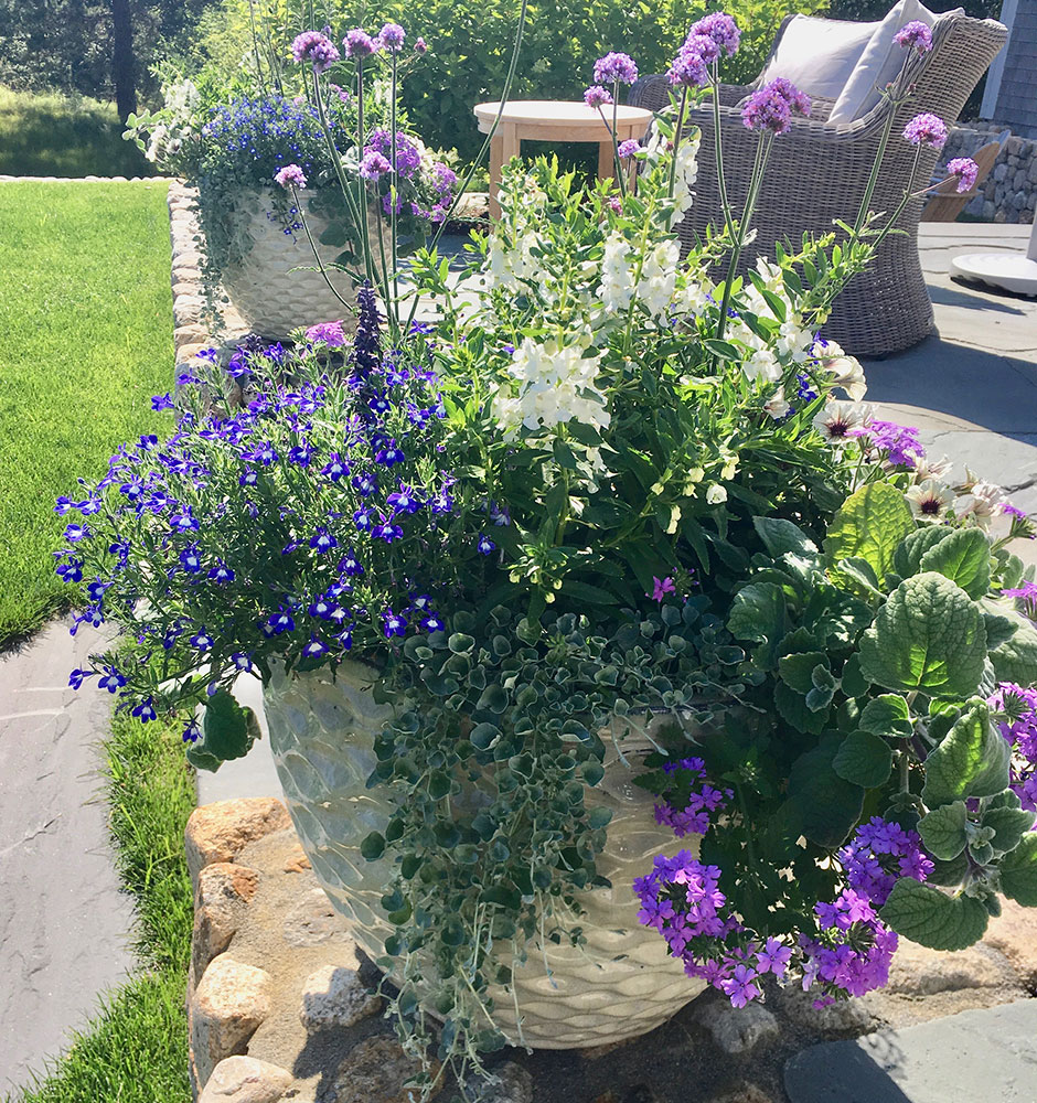 Single color schemes, utilize different shades of the same color, repeated in an array of different flowers. Although all flowers will all fall under the same category of color, the tones and shape of the flowers will be diverse, making this a dynamic planting style. Any Monochromatic color scheme may be pared with accents of silver or even deep-toned foliage for a dramatic effect. Often hints of white will be added to give contrast and add some lightness. Use this planting style if you want to add some color but still want to have a feeling of calm. I recommend this style for properties with a lot of planters or on properties where the view is the main focus.